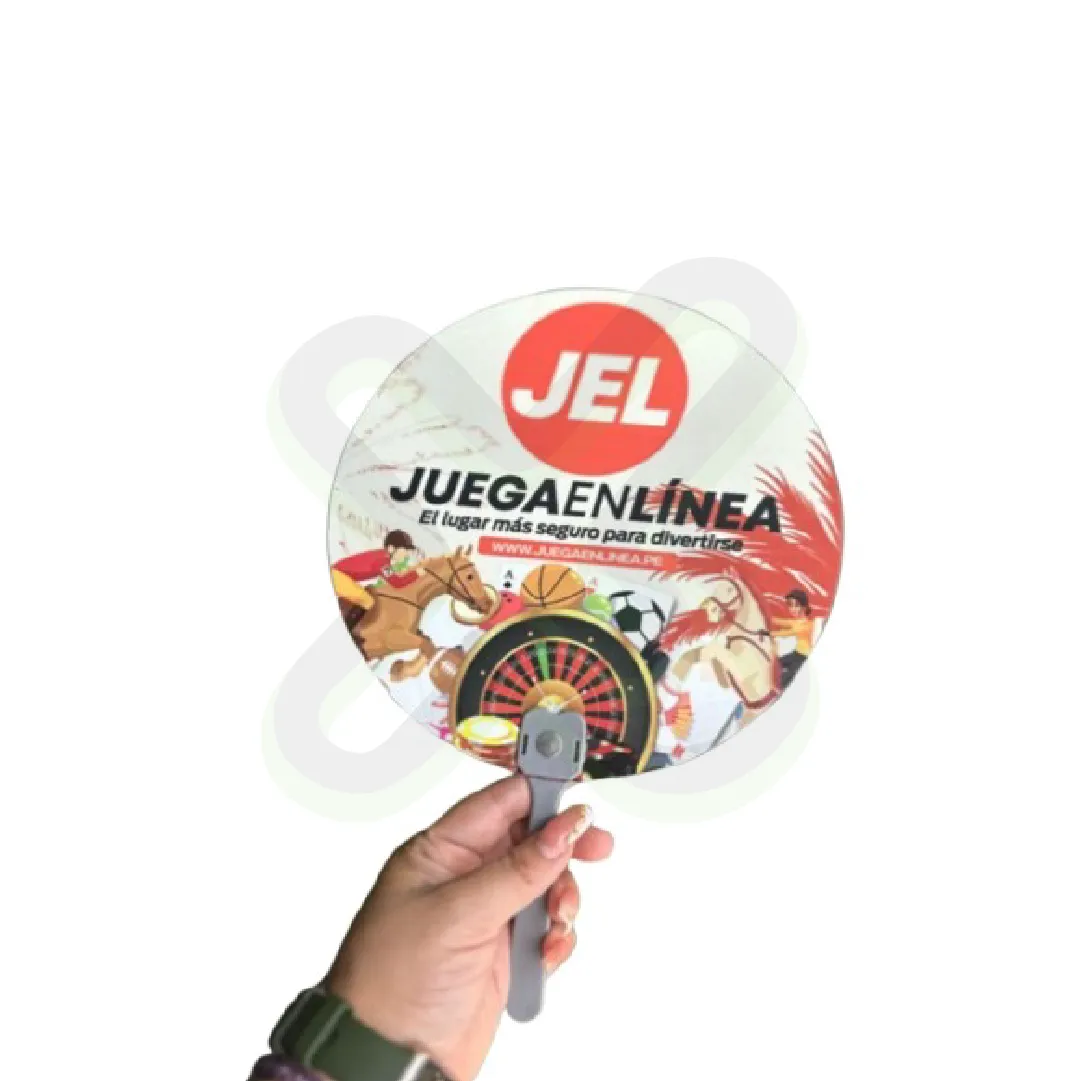 Este abanico redondo personalizado es puro flow y alegría. Color full UV para que tu marca vibre, 18 cm de presencia y listo para llevar en su bolsita individual. Ideal para conciertos, festivales, activaciones playeras o ese regalo que deja huella. ¡Que tu logo sople con estilo y brille con cada movimiento!”