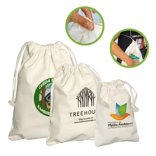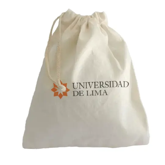 Ligera y resistente. Bolsa ahorcada Tocuyo de 30×25 cm con acabado vintage, perfecta para eventos y campañas que buscan visibilidad y presentación cuidada.