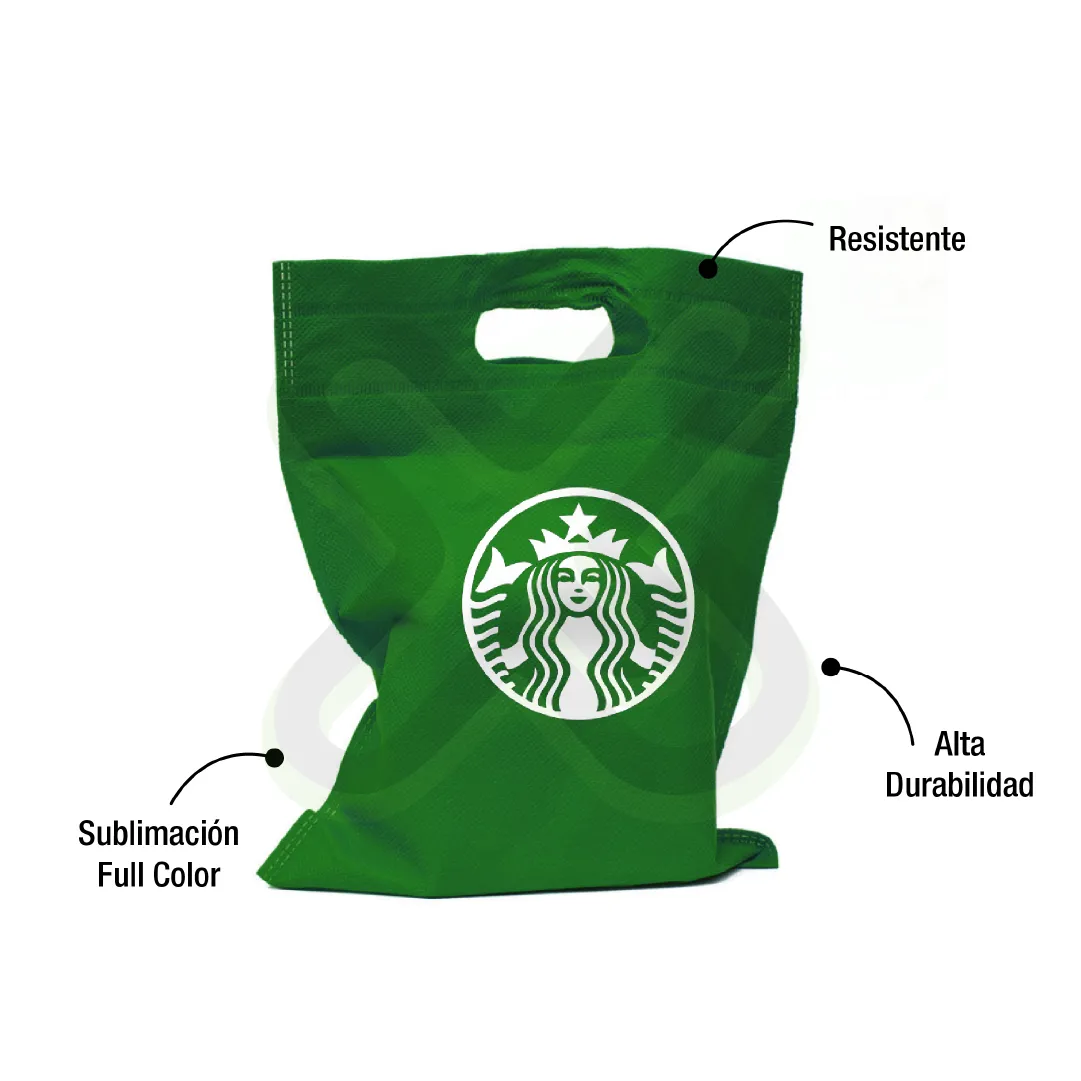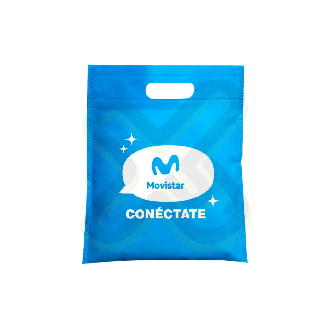 Material: Notex thermosellado; Medida 45*40cm aprox; Asa: Troquelada; Impresion: Serigrafia 1 color; Acabado: embolsado 50unds