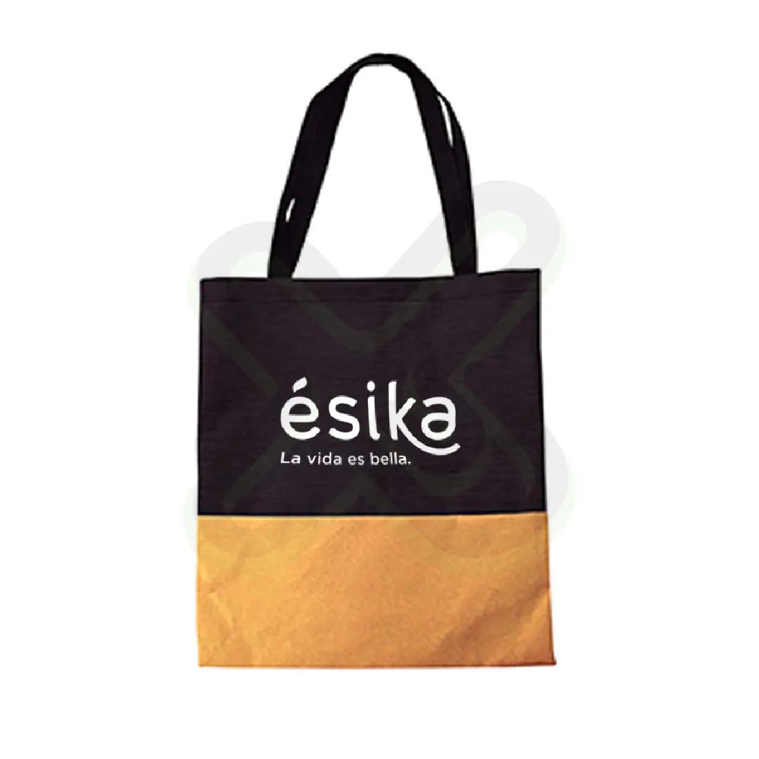Sostenible y con estilo. Este bolso de 41×36 cm mezcla poliéster resistente con una base de corcho natural. Ideal para campañas ecológicas y eventos masivos.