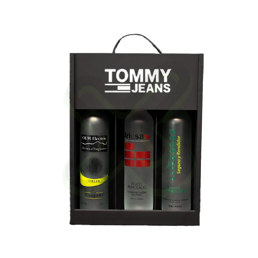CAJA PARA PISCO TIPO VITRINA 3 BOTELLAS