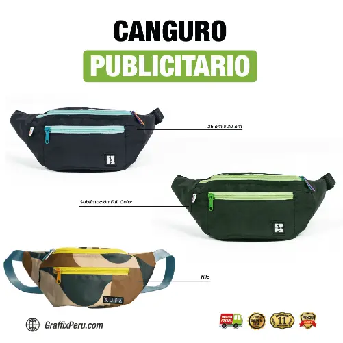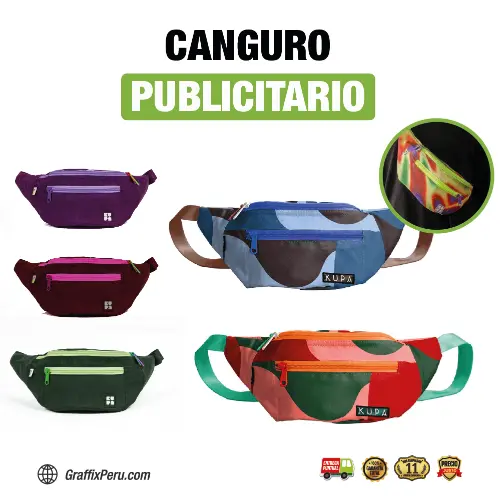 Destaca tu marca con cada detalle. Con bordado full color en material resistente, este canguro publicitario se convierte en un accesorio funcional y visualmente impactante, perfecto para promociones, eventos y merchandising corporativo.