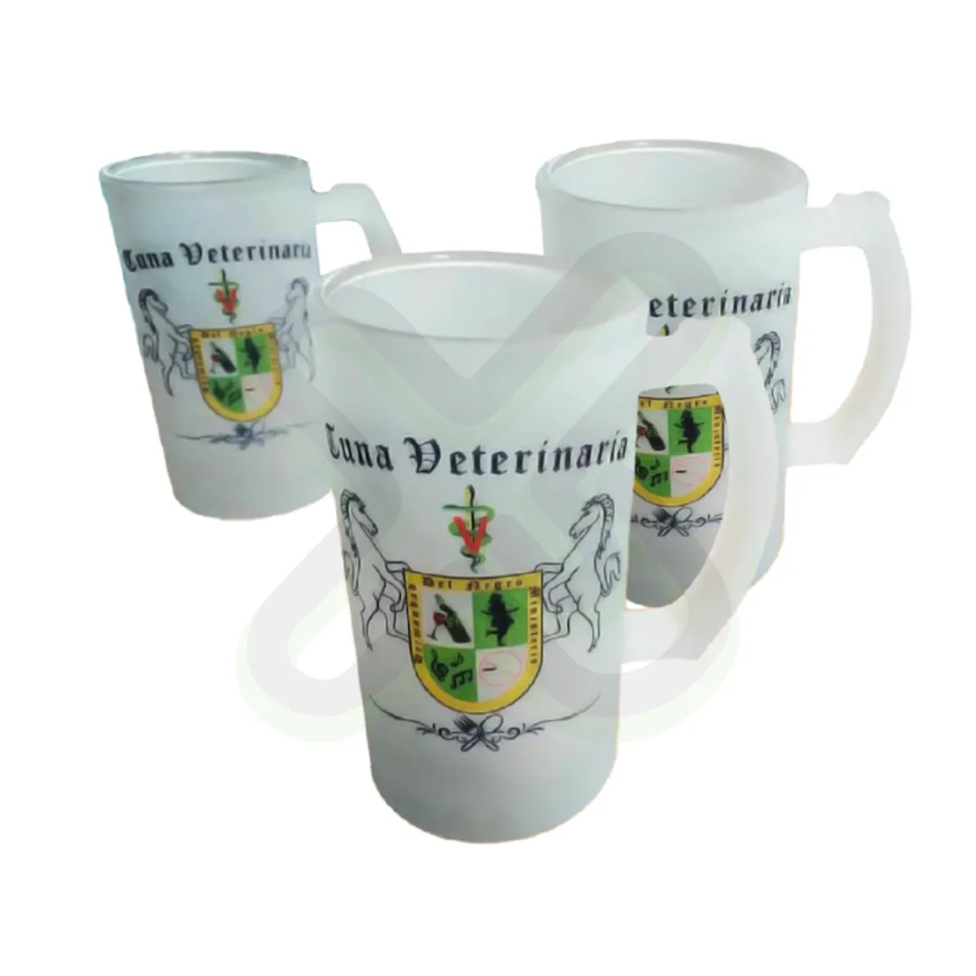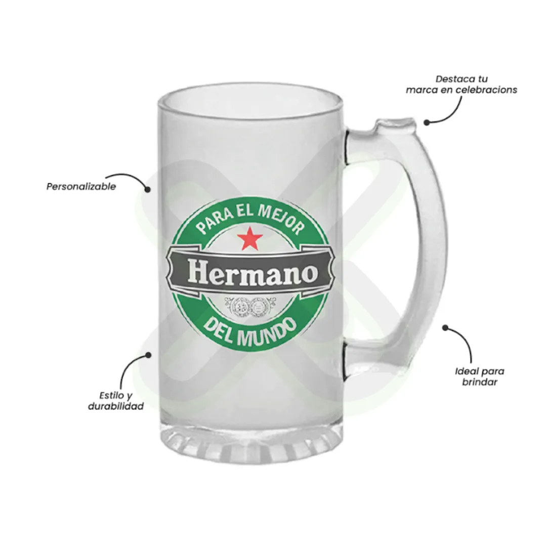 Chop cervecero de vidrio pavonado. Capacidad: 16 oz. Impresión full color. Caja de 20 unidades. Ideal para eventos, bares temáticos o promociones de alto impacto.