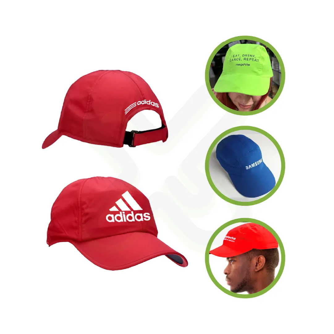 Material: Taslan; medida estandar con regulador posterior; Impresion: serigrafia a un color; acabado: embolsado 25unds