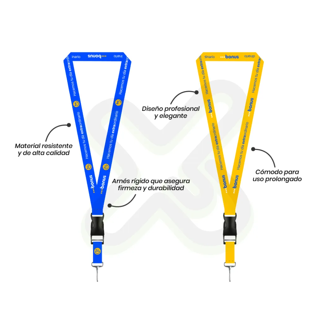 Hecho para acompañar a tu equipo en cada jornada. Este lanyard de 2,5 cm con tip top importado y mosquetón rígido ofrece durabilidad y seguridad, asegurando que tu marca se mantenga visible y profesional en todo momento.