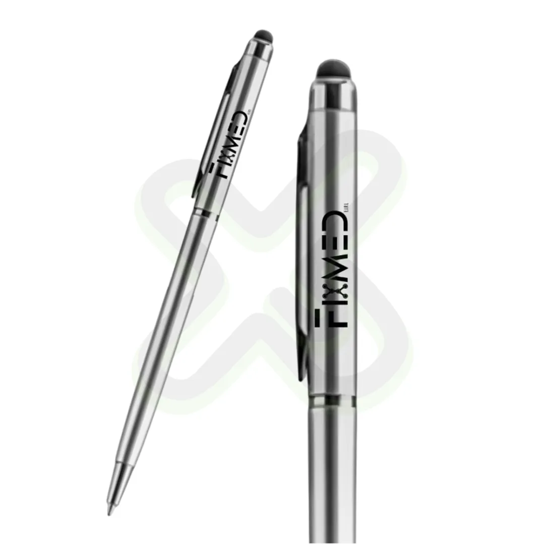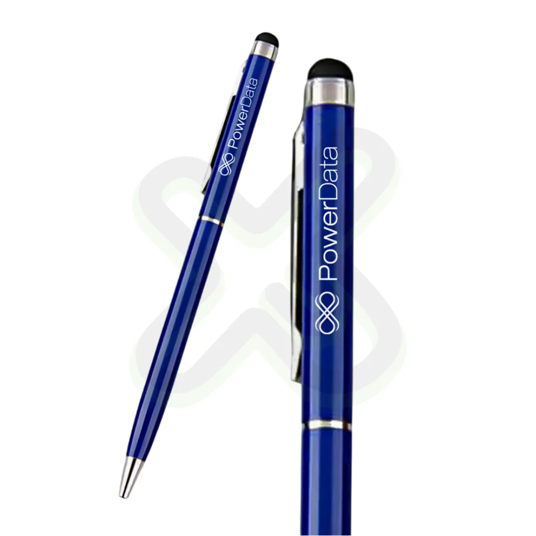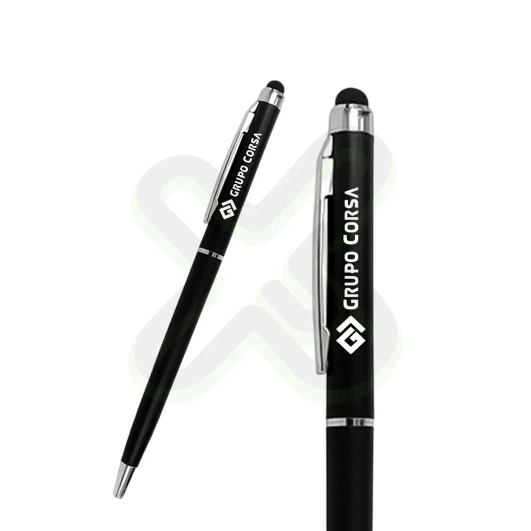 Versátil y moderno. Lapicero plástico con punta touch y tinta azul.
