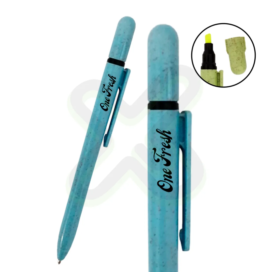 Funcional y ecológico. Lapicero con resaltador superior y cuerpo de fibra de trigo.