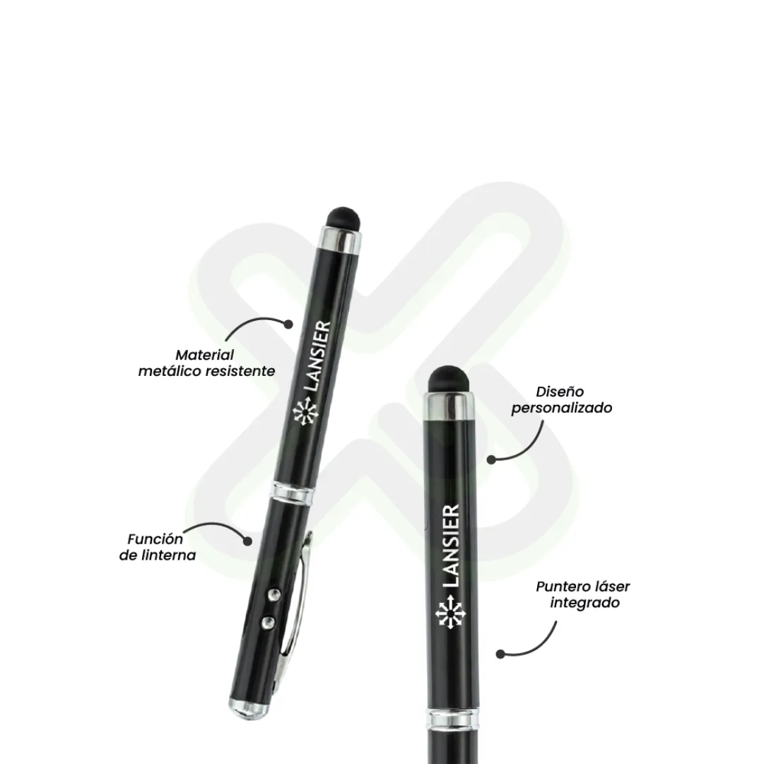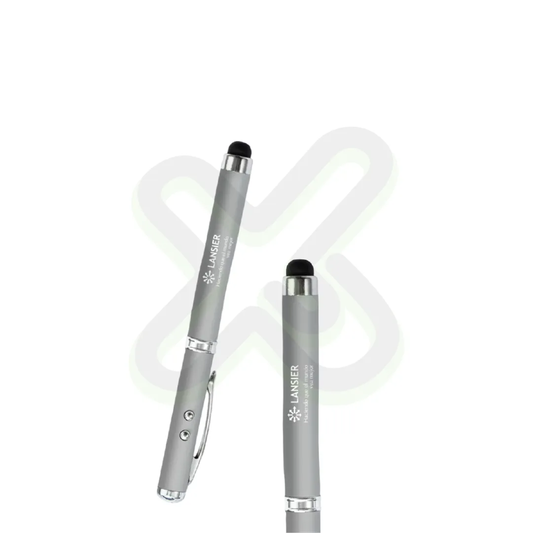 Tecnología en tus manos. Lapicero metálico con linterna, láser, tinta negra y punta touch.