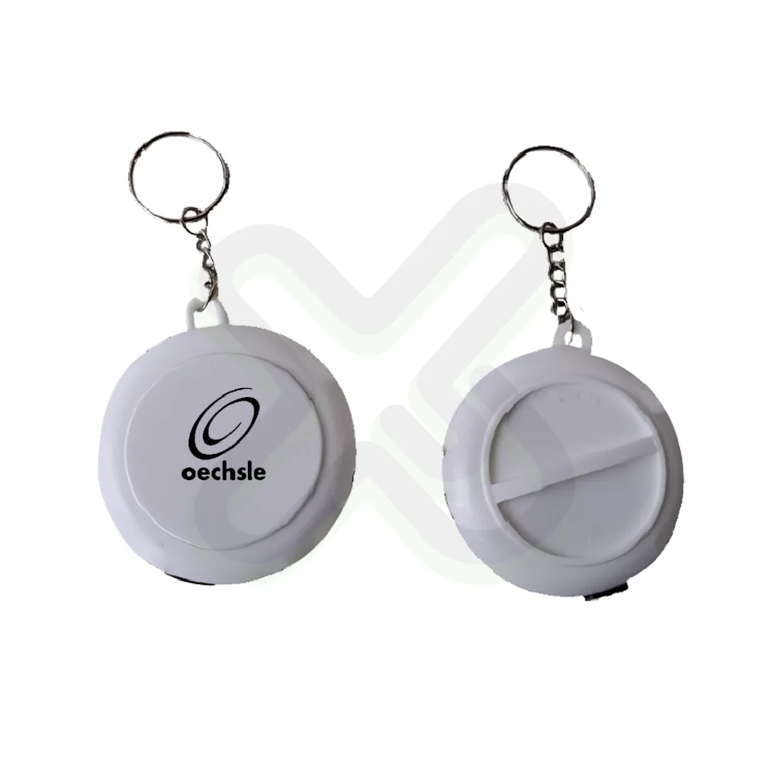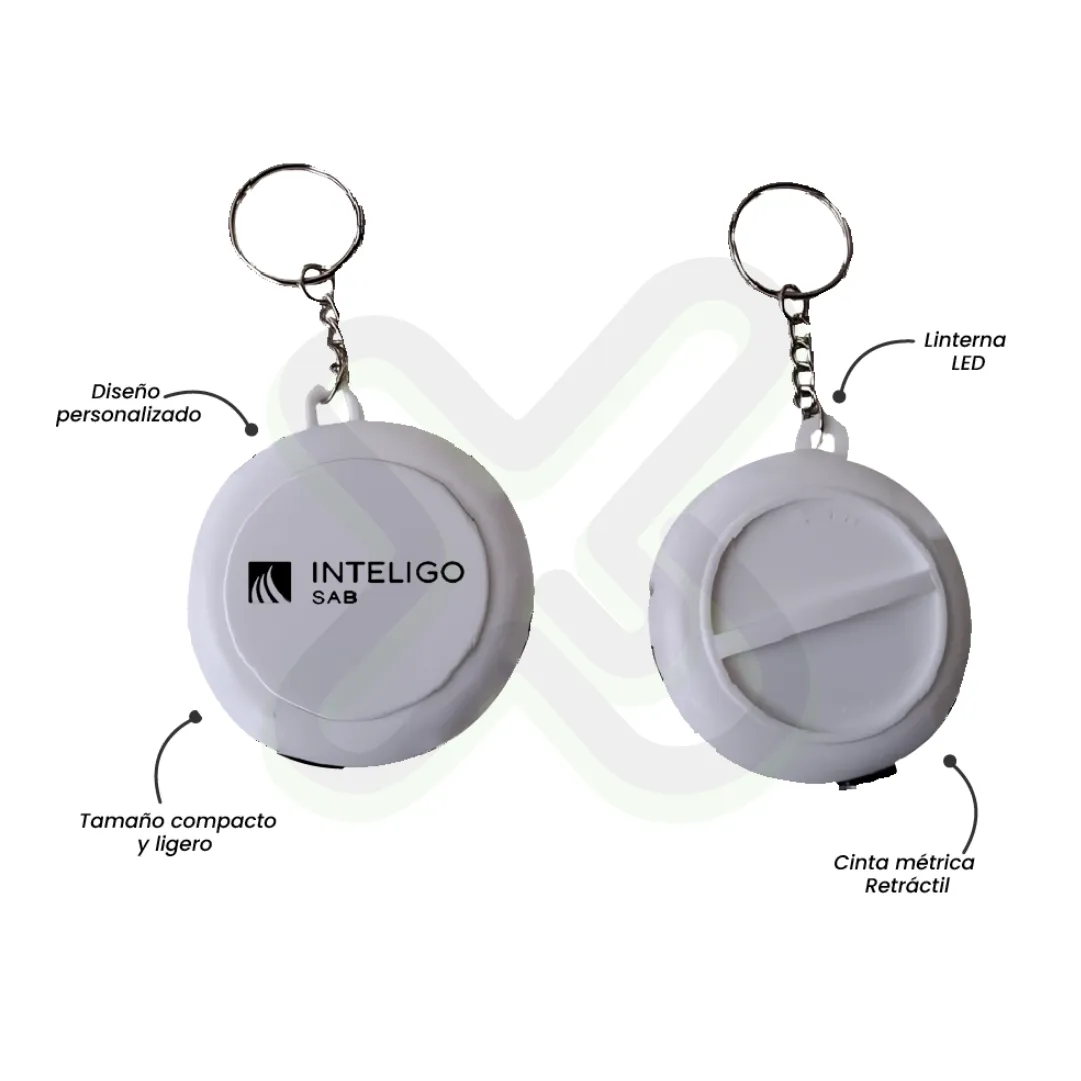 Herramienta portátil 3 en 1: wincha, linterna y desarmador, todo en un llavero compacto.