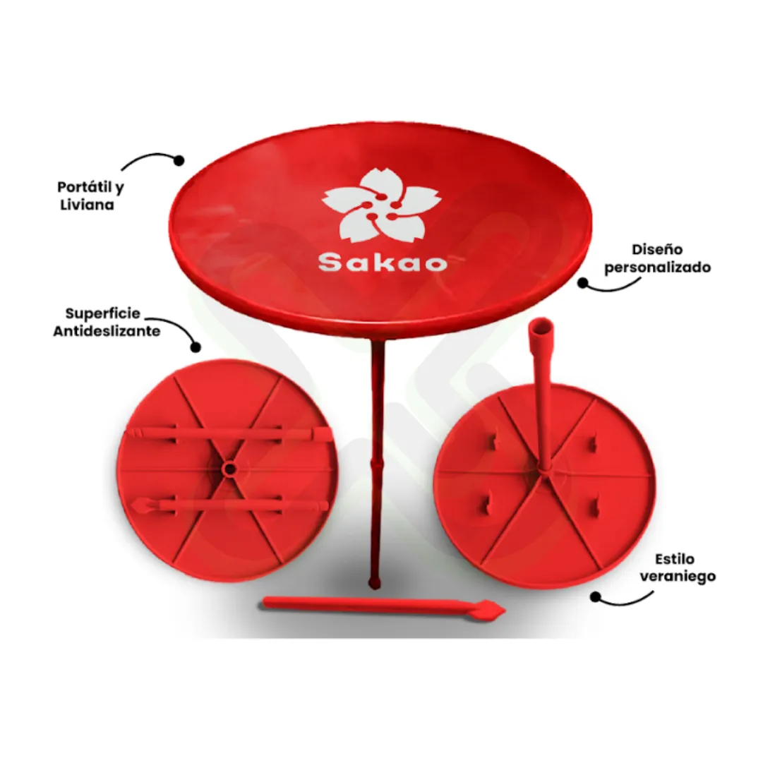 Un espacio cómodo y funcional bajo el sol. Esta mesita playera es el complemento perfecto para el verano, con tu logo en primer plano. ¡Marca presente y útil!
