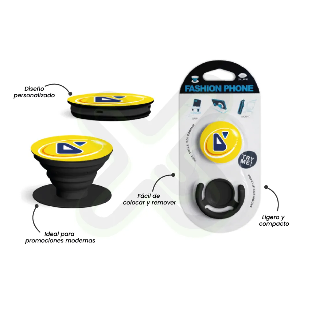 El accesorio digital que tu cliente toca a diario. Un pop socket que conecta tu marca con cada selfie y pantalla.