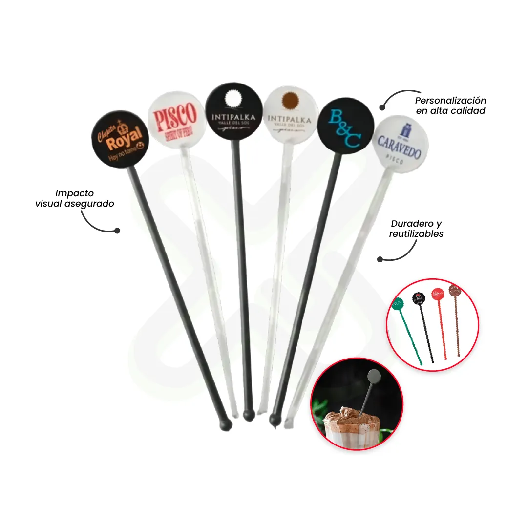 Un detalle que se mueve con ritmo. Estos removedores hacen que tu marca entre en la fiesta y se quede en la mente. ¡Conéctate con tus clientes desde la alegría!