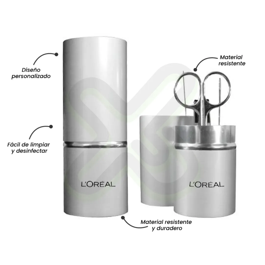 Elegante y duradero. Este set metálico contiene las herramientas clave para el cuidado personal diario.
