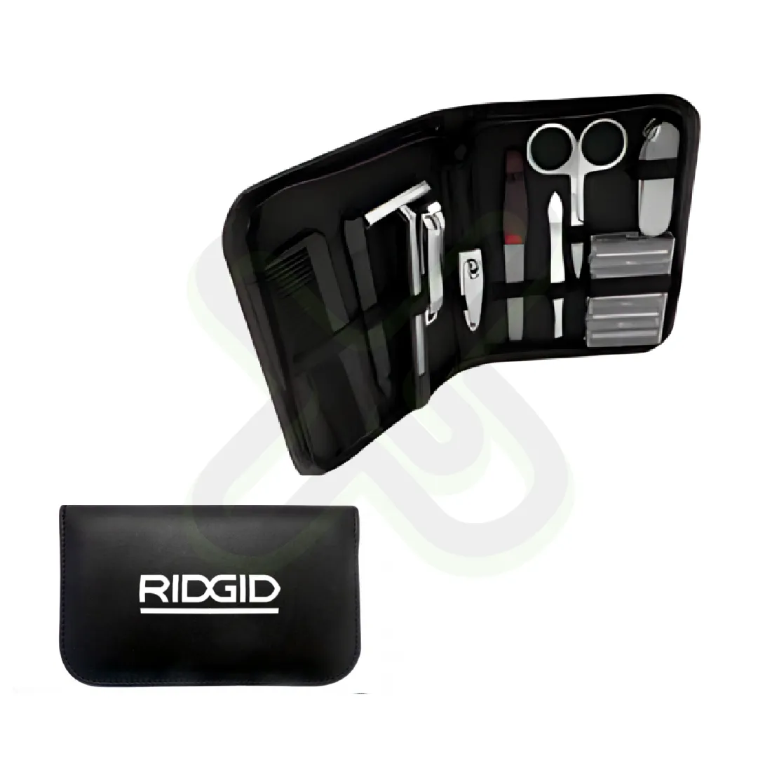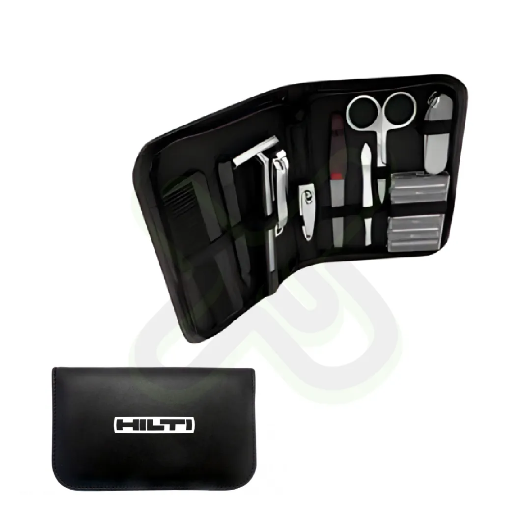 Incluye herramientas de cuidado personal y afeitado, en estuche de cuerina negro. Ideal para regalos masculinos o kits corporativos.