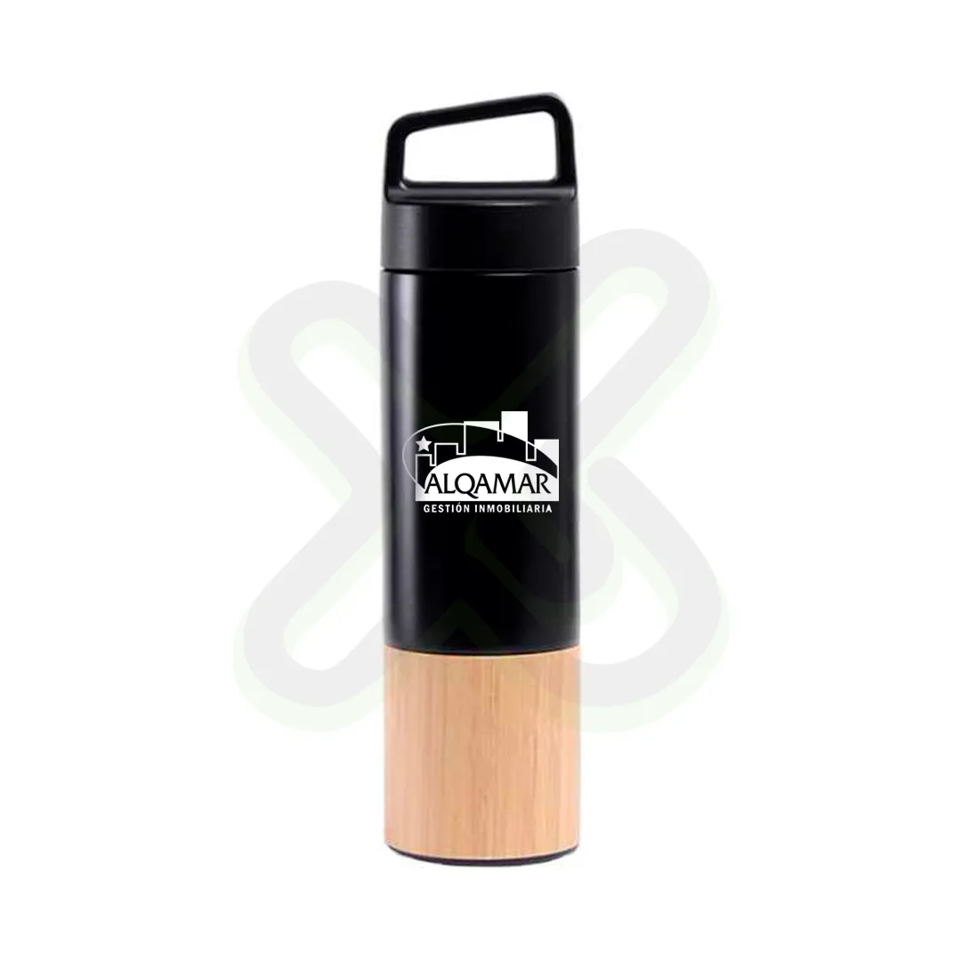 Un diseño elegante y sostenible. Este tomatodo combina acero inoxidable negro con un toque natural de bambú, ideal para regalos ejecutivos y campañas ecofriendly.
