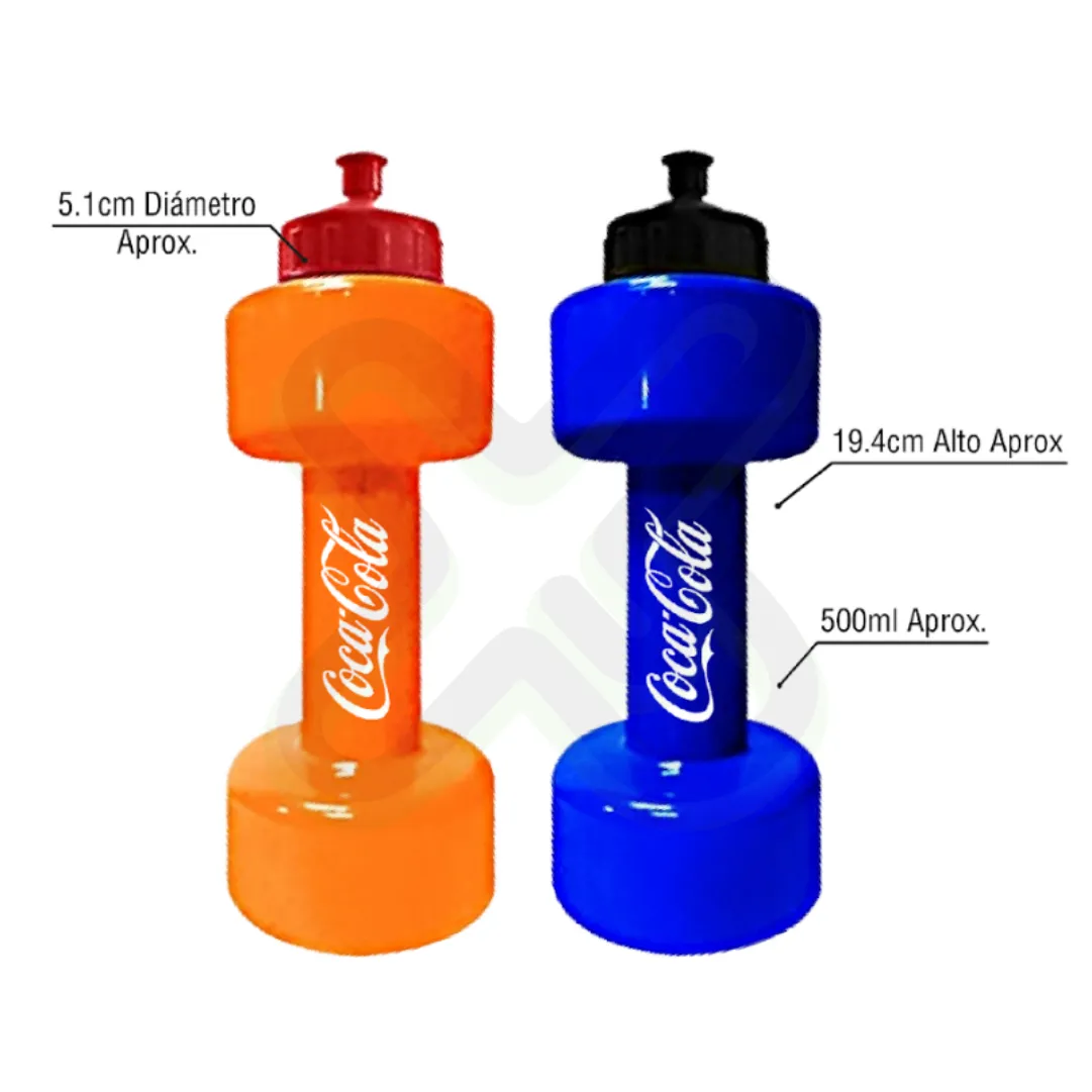 Capacidad 500 ml, plástico resistente, impresión serigráfica a un color. Paquete de 25 unidades. Ideal para gimnasios, entrenadores, promociones deportivas y marcas con espíritu activo.