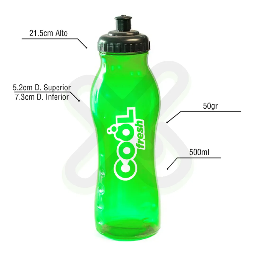 Capacidad de 500 ml, formato silueta que se adapta fácil a la mano. Plástico duradero, impresión a un color. Paquete de 25 unidades. El balance ideal entre estética y funcionalidad.