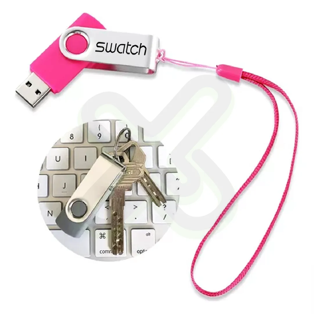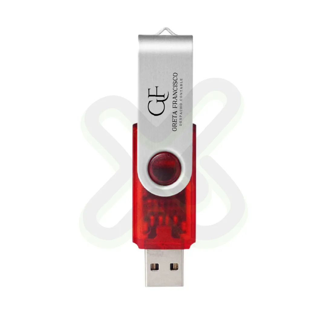 Material: chipset con cubierta de aluminio; medida: 5cm aprox abierto; impresion: grabado laser; Acabado: caja individual; Capacidad: 8gb.