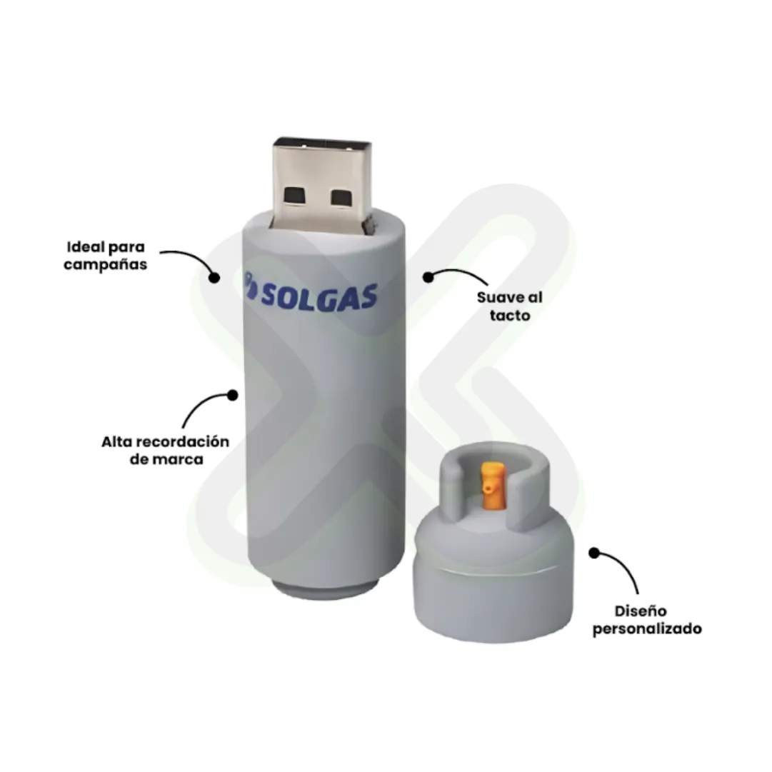 Tecnología con diseño personalizado. Este USB tipo tótem de plastisol inyectado ofrece almacenamiento útil con un diseño llamativo, ideal para campañas creativas y funcionales.