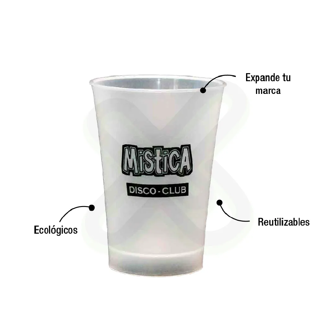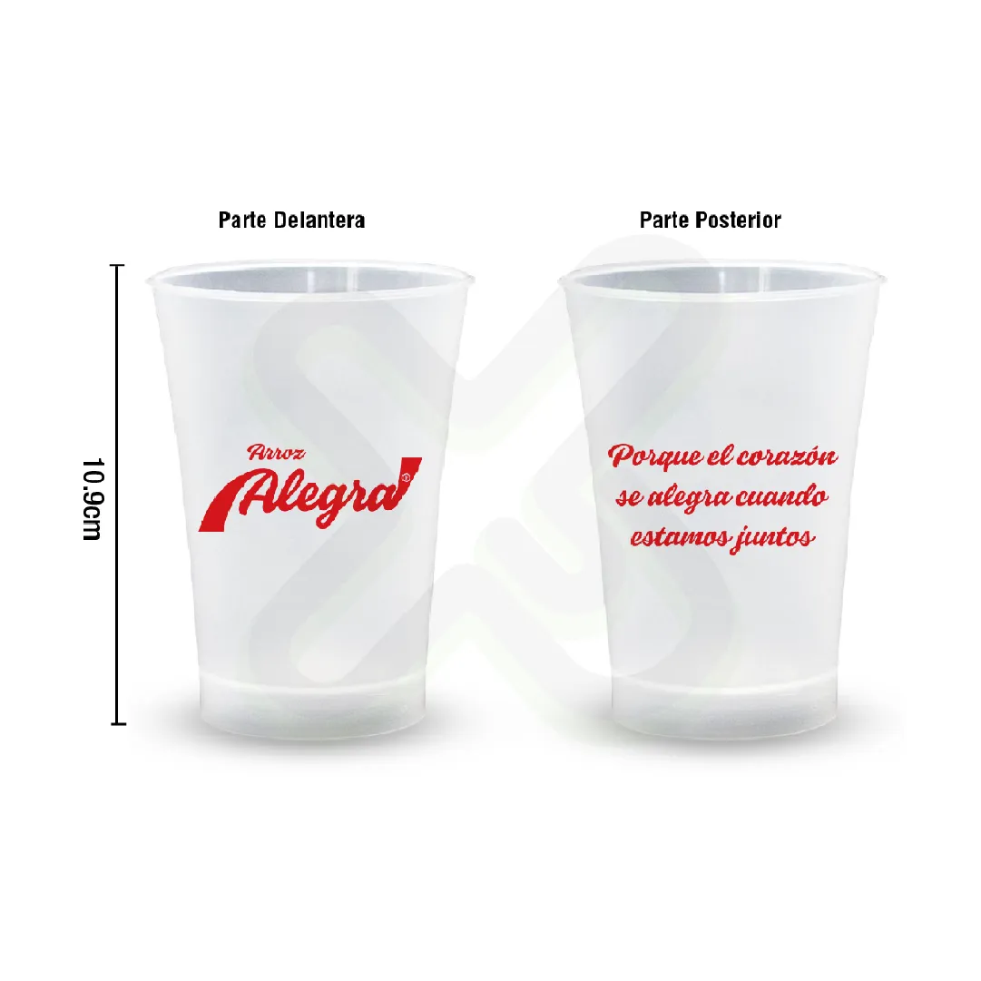 Material: Polipropileno; Medida 9,5 alto* 7 diametro aprox; Impresion: serigrafia 1 color; capacidad: 10Onz.