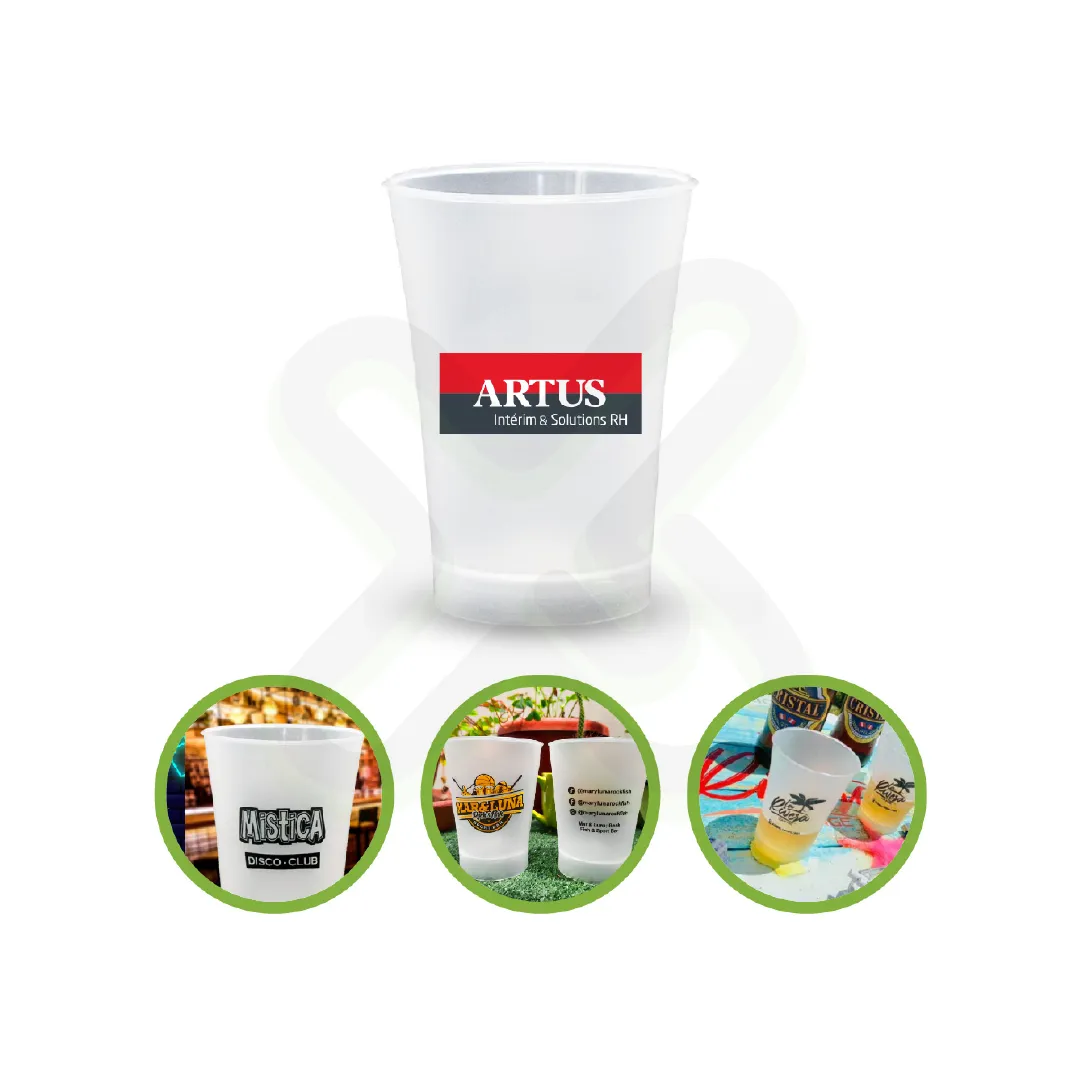 Vaso Kero de 10 oz en polipropileno, serigrafía a un color. Perfecto para eventos íntimos y regalos ejecutivos.