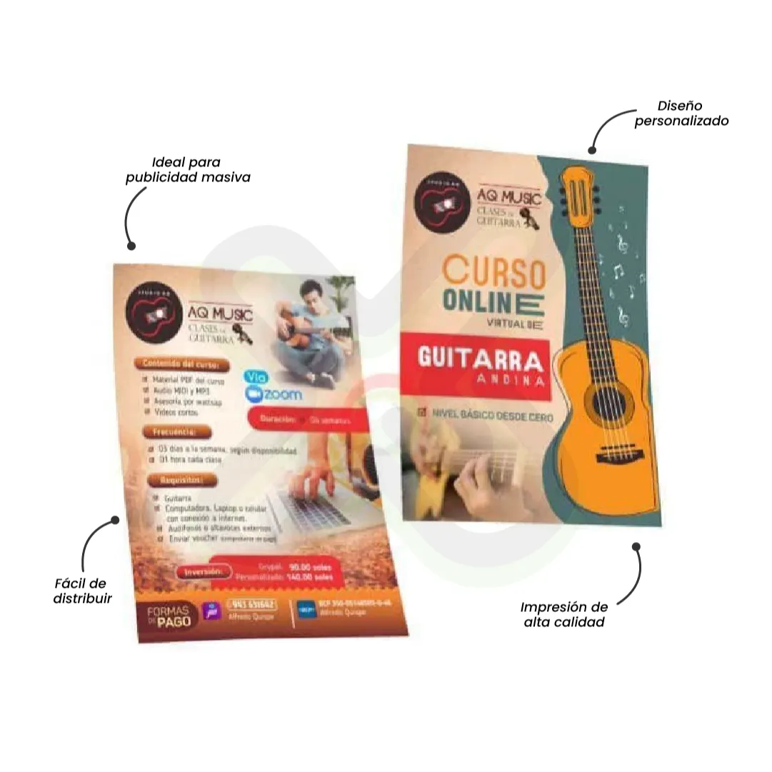 MATERIAL: COUCHE DE 150 GR MEDIDAS: A6 ACCESORIO: N/A IMPRESION: FULLCOLOR AMBOS LADOS ACABADO: N/A
